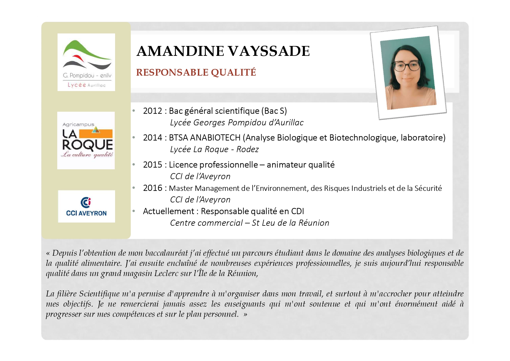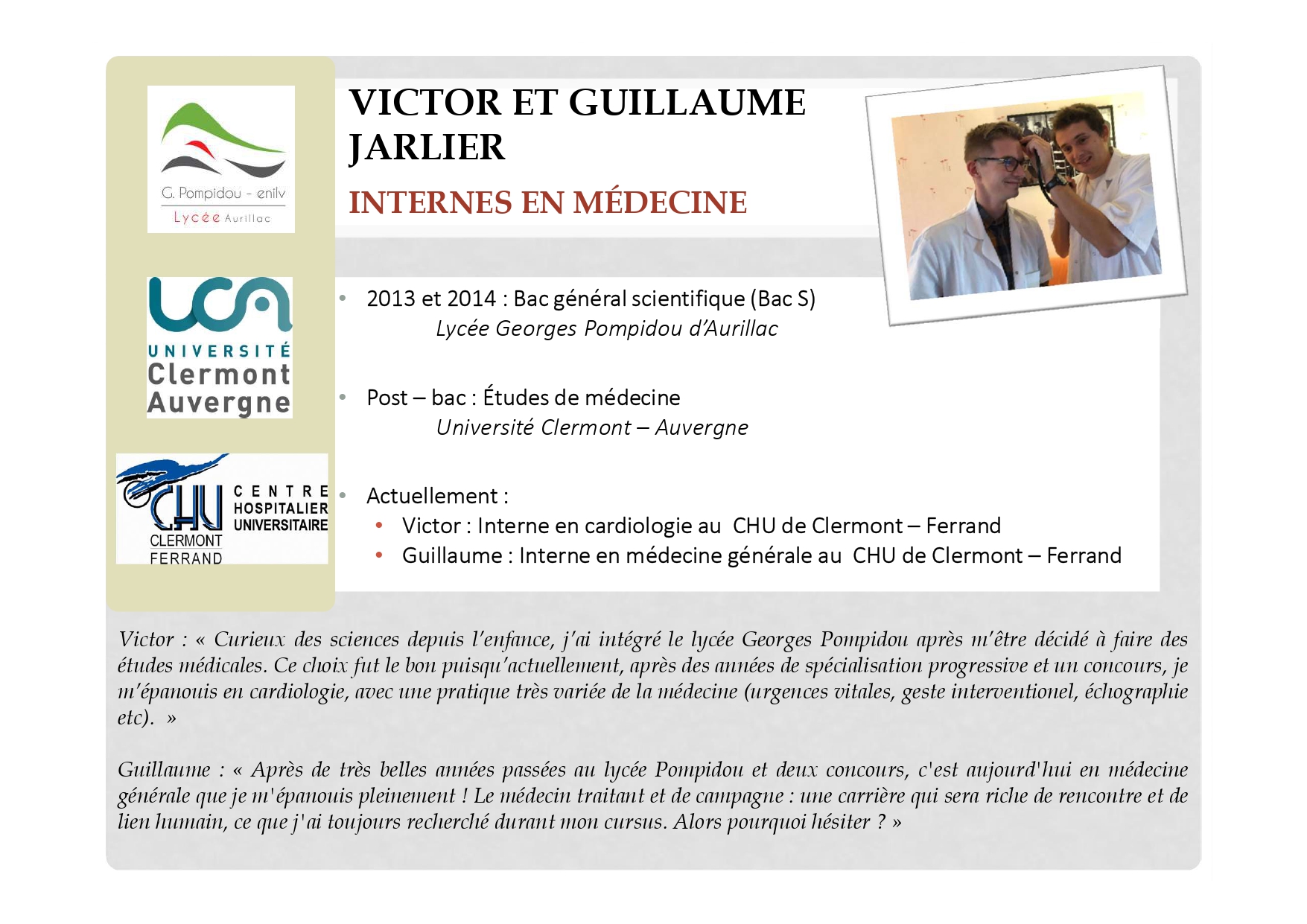 Nos anciens élèves témoignent